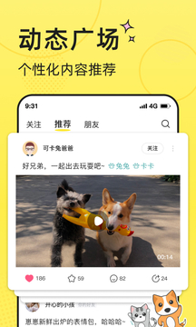 「你都有朋友圈了,宠物为啥没有?」— ——附近养宠的人都能看到;记录你和宠物的生活、保存你和宠物的欢乐时光(拆家瞬间)。