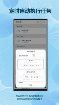 点击器是一款更专业更好用的自动点击器,常年位居国际应用市场辅助工具类下载量排行榜榜首,它可以解放您的双手,帮您做重复的屏幕操作。可以根据用户的设置自动执行屏幕手势操作,也可以轻松录制自己的手势,添加自定义操作,定时执行任务。它博采众长,解决了其他同类产品普通存在的问题,界面更简洁美观,操作逻辑更清晰易懂,占内存更小,操作更流畅,功能更丰富,使用体验有口皆碑,自动点击器连点器的不二之选。特点:1.界面简洁有格调,逻辑清晰易上手,功能强大且稳定;2.功能丰富,支持点击、长按、直线滑动、曲线滑动、缩放、返回、显示最近任务、显示主页和显示通知栏等手势操作;3.支持多指手势功能,可实现同时多指点击、滑动或者缩放等操作;4.添加脚本,自动执行;5.分享和加载脚本,方便与朋友分享操作。6.轻松录制自己的手势;7.支持定时执行任务,支持倒计或者指定具体时间,定时启动支持到毫秒级;8.支持自定义控制界面;9.支持手势编辑器,可在手势添加过程中随时调整某个手势的参数和位置,修改、新增或者删除手势,无需全部重新录制;10.支持储存和加载自定义脚本;11.运行控制栏可显示运行信息和进度,可随时开始、停止、暂停或恢复脚本的运行;12.支持反检测机制;13.支持悬浮秒表功能,配合点击器使用可极大提高抢购成功率。